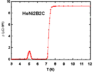 Reentrant superconductivity (shown below) is a well-known phenomenon where, at a discordant temperature, superconductivity briefly disappears due to magnetic ordering state conflicts. However, in this new material, just the opposite occurs. It is the superconductive state that only briefly appears. ![]() Prof. Robert J. Cava, head of the Princeton University Superconductivity Lab, observed that the change [in the plot at top] appears "too continuous with temperature to represent two separate phase transitions at different temperatures (superconductivity and magnetism)." In the below magnetization test, there is no clear diamagnetic signature at the point where resistance drops to zero. Only a small shelf is evident. However, other novel materials also fail to display accompanying diamagnetism at the resistive Tc. The ruthenates, for example, do not. A plot of an empty magnetometer is also shown to explain the negative slope below 96 Kelvin. |
