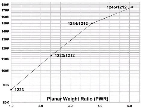 which contains one more Tm-CuO2 layer than the 1234/1212 structure. Tc-vs-PWR extrapolation (see log
