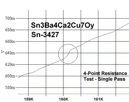 Through trial-and-error, that 160 K material was finally identified on October 4, 2008, as being Sn3Ba4Ca2Cu7Oy