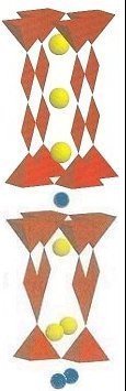 Unlike standard YBCO and Y358, the structure of Y258 is not collinear along the C axis. Shown at left, it is an intergrowth of 3212C and 2212C structures, with branching of the CuO2 chains in the 2212C sub-structure. It can be most easily characterized as a "247" with one extra barium atom and one extra copper atom. Below is a plot of Y257, which was the prototype for this discovery. Its response curve is conventional, but with a lower Tc near 96K.