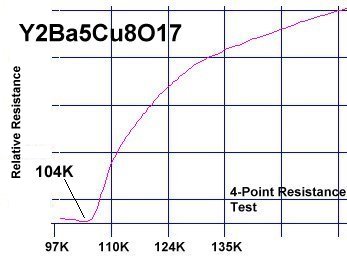 Superconductors.ORG herein reports the discovery of a new YBCO variant with resistive Tc near 104 Kelvin and a most unusual transition curve. The compound has the formula Y2Ba5Cu8O17 or "Y258". No new elements were added to the original YBCO mix.