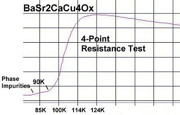 The other discovery BaSr2CaCu4Ox is less likely to have commercial success because of its multi-phasic content. (see plot above right)