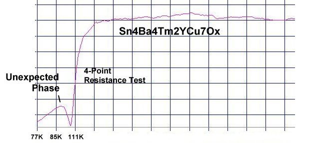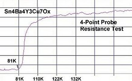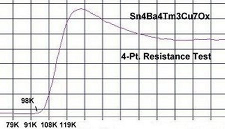 Four resistance tests of this new material produced an average Tc of 104 Kelvin.